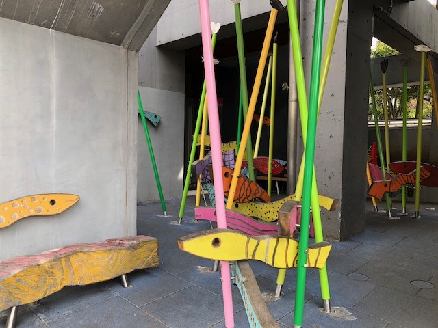 同じビルに小児科などがあるため、入口には子供のための遊具があります。デザインと色使いが可愛い。