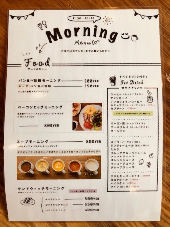 8時半~11時までのモーニングは、パン食べ放題以外にも数種類ありますので、お腹の空き具合で選べます。