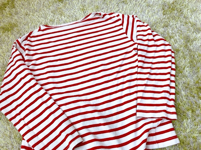 デコルテがキレイに見えるボートネックタイプのサーバーバスクシャツ。