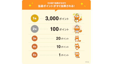 5月23日0時~6月11日23時59分のキャンペーン期間中、au PAYのコード決済・請求書支払いで200円以上を支払うと、通常進呈するベースポイントに加え、もれなく1等は3000ポイント、2等は100ポイント、3等は20ポイント、4等が10ポイント、5等1ポイントのいれずかが当たる。