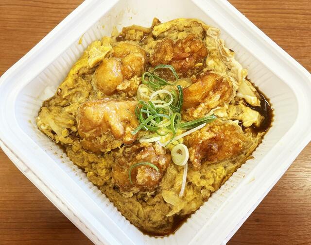 こちらも「カリっともも」を卵でとじたタイプですが、さらに濃厚な辛さを期待させる赤みがかったソースがかかっています。