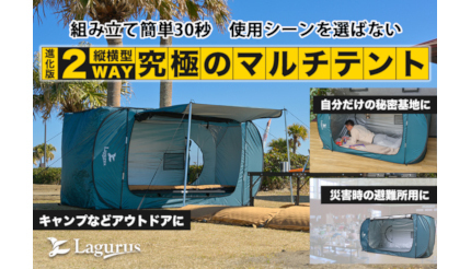 リトルマートコーポレーションは4月28日に、キャンプ使用時の機能性と居住空間における利便性を大幅に向上し、災害時にはプライバシーを守るシェルターとしても使用できる「個室型マルチテント“Freely Evolution”」の先行販売を、クラウドファンディングサイト「GREEN FUNDING」にて開始した。先行販売期間は4月28日~6月30日で、先行販売価格は1万5400円から(一般販売価格は2万2000円)。