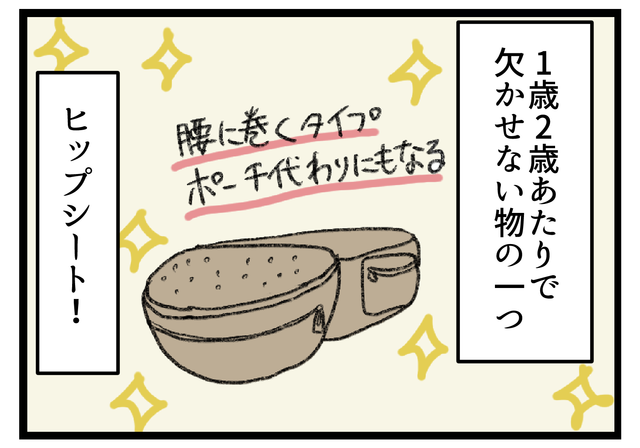 抱っこしたり降ろしたりが楽なヒップシートはとっても便利です。ポーチがわりにもなるのでそこも便利。