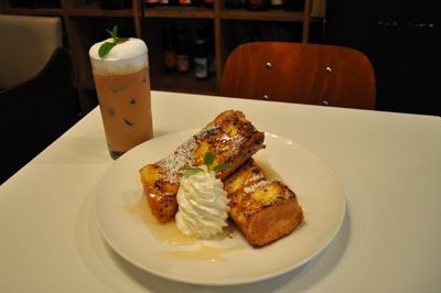 ここで、甘いものに目がない女子達にお勧めのスイーツとドリンクを聞いたところ、「ハチミツたっぷりのフレンチトースト」(700円)と「アイスキャラメルラテ」(700円)を教えてもらった。