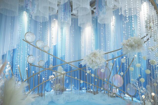 チュールやビーズなどさまざまな素材を使って、海の中に差すキラキラとした輝きを表現した、最高に"映える"スタジオセット。