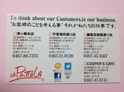 現在は、「ラ・パットーラ茅ヶ崎本店」のほかに、平塚海岸通り店、鎌倉芸術館通り店、「COOPERS cafe(クーパーズカフェ)」の4店舗を経営している。現在、年商2億2000万円、従業員数は50名まで成長をとげた。