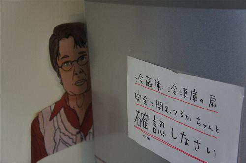 たとえば、冷蔵庫の前に市原悦子さんを貼ることで、扉の開けっ放しを防いだり、賞味期限の切れた食材の管理ができたりなど、コスト管理の意識が根付くのです。