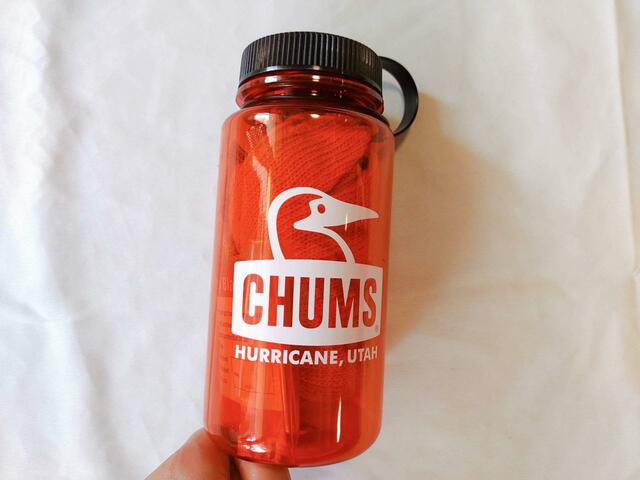 箱の中には、赤×チャムスのマーク「ブービーバード」が描かれたボトルが確認できました。