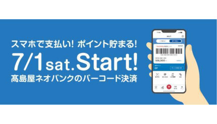 高島屋と住信 SBI ネット銀行は、7月1日から「高島屋ネオバンク」を活用したバーコード決済サービスの提供を開始する。