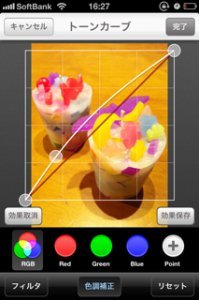 撮影した写真をトーンカーブなどで簡単補正してから保存することができます。