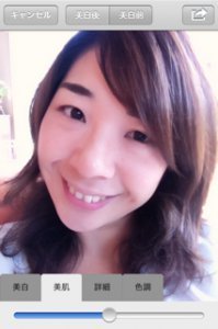 でも、この魔法のアプリを使えば大丈夫!こーんな感じで美肌に写りますよ!(肌が5歳は若返る感じ!)