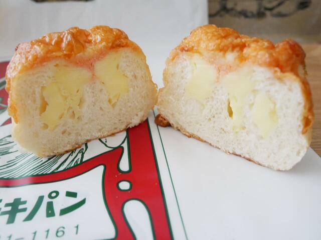 チーズはブロックチーズがパン生地の中に入っていて、その上にめんたいマヨネーズとチーズをトッピングしたスタイルになっています。