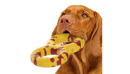 愛犬の1人遊びや、飼い主と一緒に遊ぶシーンなど、さまざまな場面を想定し、ボールやスティック、リングやフリスビーといったバラエティに富んだデザインを用意しており、硬さも一般的な噛み応えのものから超ハードなタイプまで用意され、これまでさまざまなおもちゃを壊してしまっていた中・大型犬にも満足してもらえる強靱さを備えている。