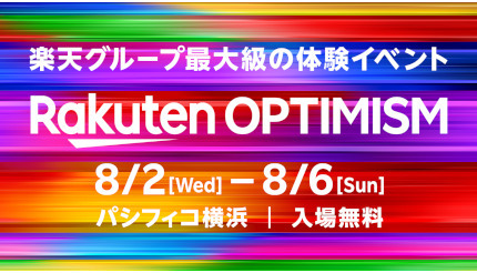 楽天グループは8月2日~6日の期間、同グループ最大級の体験イベント「Rakuten Optimism 2023」を、パシフィコ横浜(神奈川県横浜市)にて開催する。入場は無料。