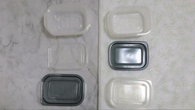 比較した結果、「クリアブラック」の蓋の色やご飯一膳用が、100円均商品独自の展開でした。