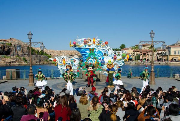 スタートは午前中に公演されるハーバーショー「ホリデーグリーティング・ フロム・セブンポート」から。東京ディズニーシーの7つのテーマポートから、ディズニーのお馴染みの仲間たちがメディテーレニアンハーバーに集まり、30周年のクリスマスをお祝いします。