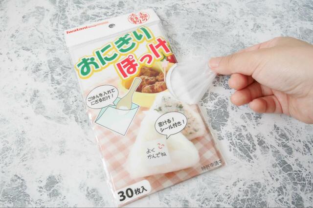 おにぎりぽっけなら、ごはんをシートに入れた時点でほぼ三角形ができあがっているので、軽く握るだけで誰でも簡単に三角おにぎりが作れるんです。