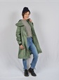- 薄手で軽い撥水素材を使用。大きなつば付きフードと高い襟元で顔まわりをガードして、濡れにくいデザイン