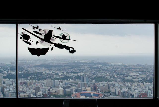 これは12月21日公開の新作映画『プレーンズ』のシルエットですね。おもしろい演出。
