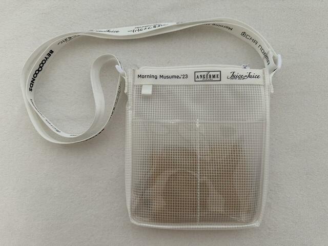 オフホワイトのクリアバッグには、「モーニング娘.。'23、ANGERME、Juice=Juice、つばきファクトリー、BEYOOOOONDS、OCHA NORMA」のロゴが、黒い文字で配置されています。