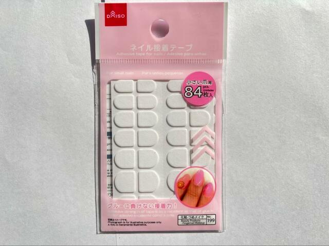 ダイソーで販売されていた「ネイル接着テープ(小さい爪用)」を使用した付け方のコツをご紹介します。