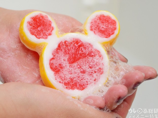 今回、ミッキー型グレープフルーツのフルーツキャンディーバーソープを、一足先に使わせていただきました。