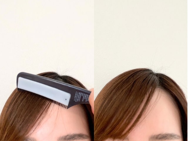 普通に前髪をとかすようにコームを通していくと、前髪がワックスで適度にコーティングされ、しっとりしてまとまりが出てきました。