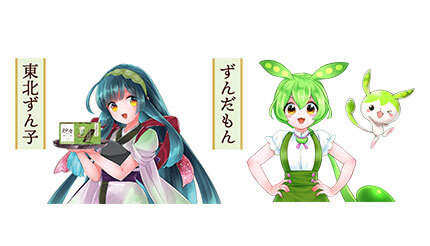 「東北ずん子」は、江戸村ににこ氏がデザインした東北6県の応援キャラクター。趣味はずんだ餅づくり、特技は弓道で、「ずんだアロー」という技でどんな餅もずんだ餅に変えてしまう。もともとは応援キャラクターだったが、入力文字読み上げソフト「VOICEROID」化に続き、音声合成ソフト「VOCALOID」化も行われ、さらに「VOICEPEAK 東北ずん子」「CeVIO AI 東北ずん子 ソングボイス」も発売になった。「VOICEPEAK 東北ずん子」には、おまけとして「VOICEPEAK ずんだもん」も収録する。