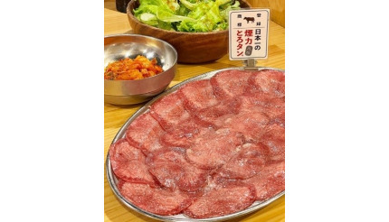 皿には10枚のとろタンが盛り付けられた見た目の迫力と、その味が各種SNSで話題になっており、テレビや雑誌にも数多く取り上げられている。価格は968円。