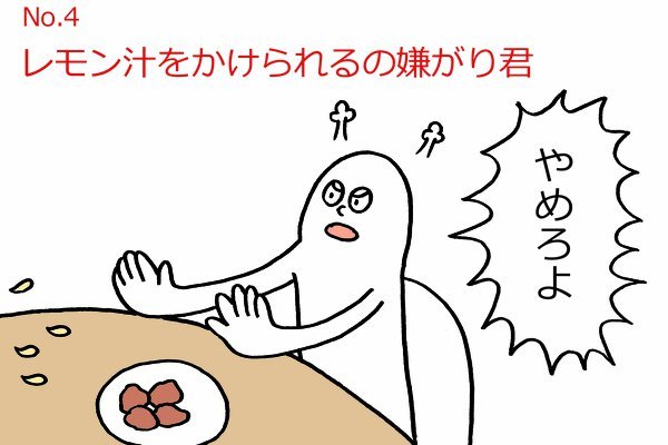 レモン汁かけ子ちゃんがかけたレモン汁をマジで嫌がってしまうのが”嫌がり君”。
