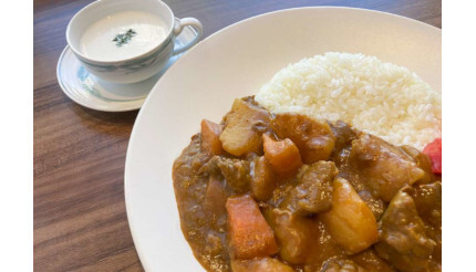レシピをもとに、石原音楽出版社からのアドバイスで再現したボリューム満点のカレーで、石原裕次郎さんが愛したホテルオリジナルのビシソワーズ(じゃがいもの冷たいスープ)も用意している。