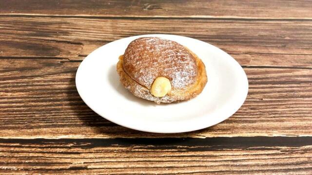 プレーン味の生ドーナツはきび砂糖でまぶされていますが、こちらの生ドーナツはパウダーシュガーでまぶされています。そのため、カスタードの上品な甘さが引き立ちます。