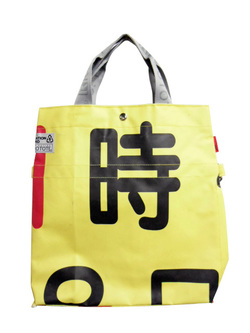働き終わった横断幕がトートバッグに。素敵なアップサイクルですね。