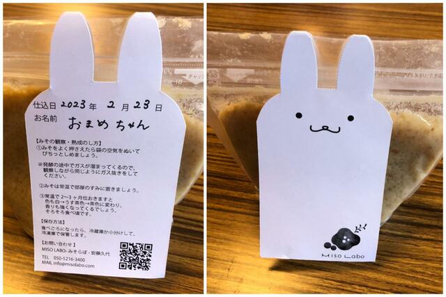 味噌の仕込みが完了したら、付属の名札に仕込日と名前を書きましょう。かわいいキャラクターが描かれていて、とってもキュート!