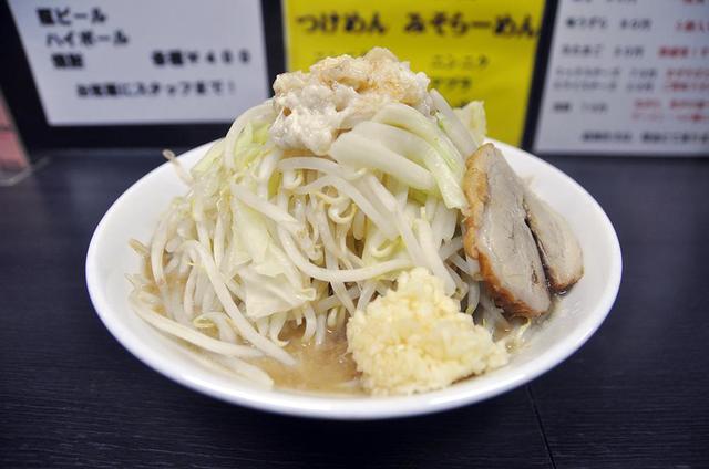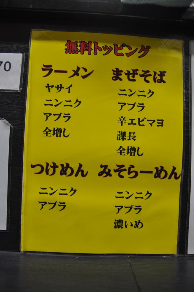 では、「ラーメン」(並=麺200g、650円)から注文。無料トッピングは、「ヤサイ」「ニンニク」「アブラ」の“全増し”でコール。
