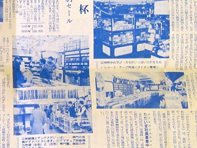 「ビデオコーナーを新設」などの記事から、電子部品だけではなく、オーディオを中心とした家電、マイコン(マイクロ・コンピュータ)などの家電量販店、無線機の専門店もあったことがわかる。ビデオは15万円からというのもしびれる価格だが、ステレオラジカセが2万5000円より。