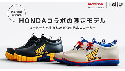 二輪車業界国内最大手の「Honda」と、究極の履き心地を追求する靴ブランド「ccilu」がタッグを組み、バイクファンや「Honda」を愛する人々のために作った限定モデルスニーカーが登場する。「ccilu」の人気シリーズである「コーヒーかす」を素材に使ったサスティナブルなシューズに、「Honda」のバイクを想起させる“遊び心あるテイスト”をふんだんにあしらっている。デザインにこだわった「防水コーヒーブロックスニーカー」と「防水コーヒースニーカー」2種類の「Honda」限定モデルスニーカーを、1000足(1デザイン500足)の完全受注生産で販売する。