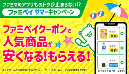 ファミリーマートは6月27日~9月4日の期間、公式アプリ「ファミペイ」を毎日の買い物で使えば使うほどおトクになる「ファミペイサマーキャンペーン」を実施する。