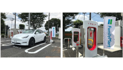ファミリーマートでは、2010年から、地域のインフラ拠点として店舗への急速充電器の設置を進めており、流通・小売業界No.1の全国約600店舗に設置している。また、Tesla スーパーチャージャーは、プラグを差し込むだけで自動的に充電され、約15分間で最大275km相当分を充電することが特長で、現在全国70か所に設置されている(5月末時点)。