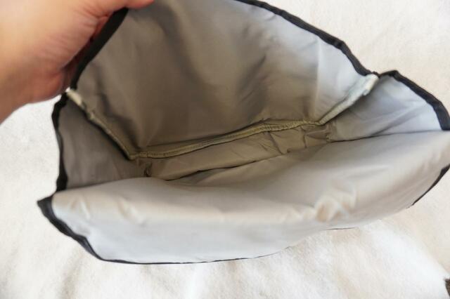 裏地は荷物が探しやすくなるようにライトグレーの生地が使用されています。確かにこれなら中身を確認しやすいですね。