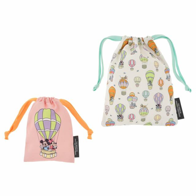 ピンク地にミッキーとミニーが乗った気球のデザインと、ベージュ地にミッキー&ミニーやドナルド&デイジー、プルートなどたくさんの気球を総柄であしらったデザインです。
