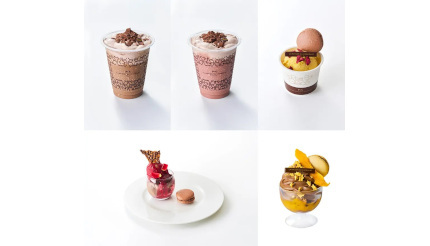 4店舗で販売しているのは、ソルベとショコラ グラッセを合わせたアイスドリンク「フラッペ」2種、カカオの風味が際立つ、濃厚でリッチな大人の味わいのショコラソフトクリームの「ミニパフェ」2種、カップスイーツの「グルマン マンゴーパッション」。暑い季節にうれしい、爽やかなフルーツを合わせたひんやり夏ショコラになっている。