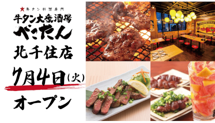 牛タン大衆酒場べこたん、新店舗が北千住にオープン。7月8日までは一部ドリンクを半額で提供