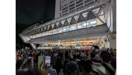 最後に従業員が整列し、深々とお辞儀をして、セレモニーは終わった。大きな拍手が起き、あちこちから「ありがとう」と感謝の言葉が飛び交った。セレモニーが終わってしばらくしても「拍手」と「ありがとう」が断続的に続き、群衆はなかなか帰ろうとしない。業を煮やしたスタッフが「ただいまをもちまして、セレモニーはすべて終了いたしました。50年間のご愛顧、誠にありがとうございました。皆さま、お気をつけてお帰りください。本日はありがとうございました」とマイクで告げた。「なんだよ。ちゃんと音、出せるんじゃないか。せめて外に集まった人たちにもセレモニーの音を聞かせてくれればよかったのに……」そう思った人も少なくないと思う。アナウンスをきっかけに、徐々に群衆は散っていったが、夜遅くまで広場に佇んで別れを惜しむ人たちも少なくなかった。