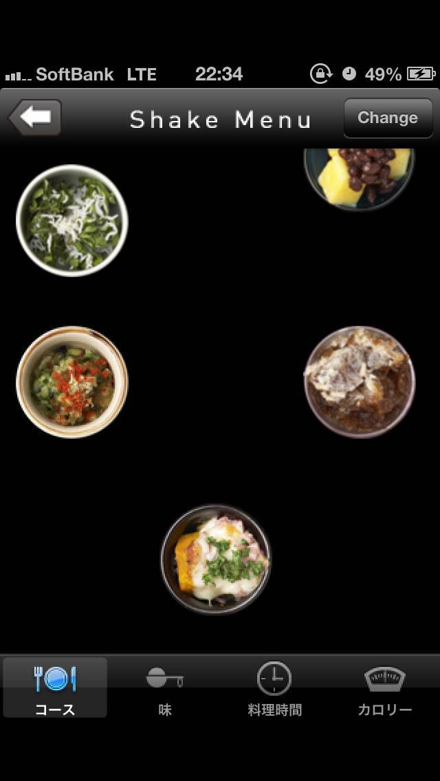 レシピの選び方もユニークで、iPhoneをシェイクしてランダムに流れてくるおちょこをタップ。