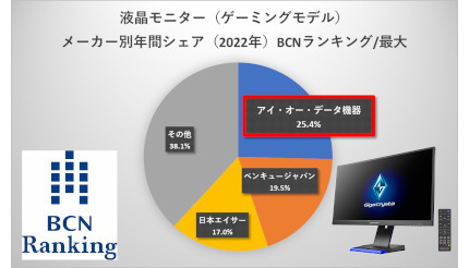 2022年の液晶モニター(ゲーミングモデル)シェアNo.1メーカーはアイ・オー・データ機器
