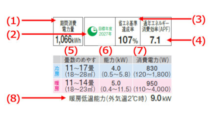 この(1)~(4)はどれも省エネ性能に関するスペックで、省エネ性能を重視するなら、まずはここをチェックしたい。