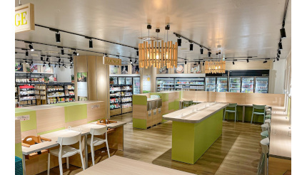 北海道プロデュース230は、利用客がゆっくりと快適に食事や買い物を楽しめるよう、内装から陳列棚、商品ラインアップまでフルリニューアルしている。