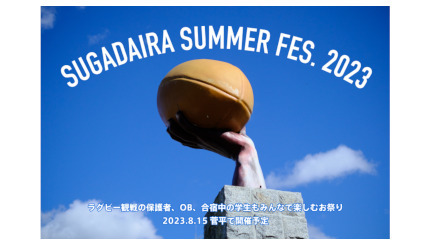 菅平サマーフェスティバル2023は、菅平に60万人が集うラグビー合宿。「再会の喜びと新たなスタート」をテーマに、自由な雰囲気で再会の喜びを分かち合う場となる「アフターマッチファンクション」を提供するとともに、全国から菅平へ集まるラガーマンおよび関係者同士が交流を深めることで、競技の普及と継続を図る。