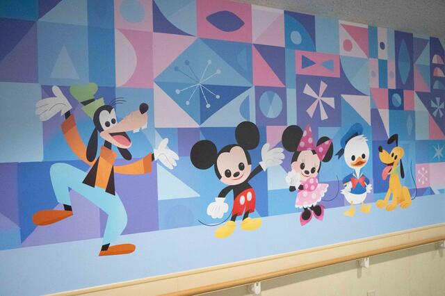 きつい治療の部屋に向かう道を彩ることで、ディズニーキャラクターが後押しをしてくれます。